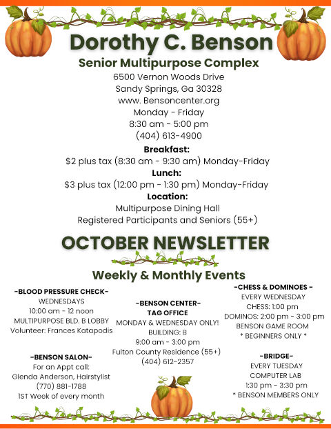 The Dorothy C. Benson Senior Multipurpose Complex, commonly referred to as The Benson Center, serves North Fulton County residents through three distinct levels of services for independent, semi-independent and semi-dependent individuals. At the Benson Center you will find informative classes and programs to enhance your life and keep you socially active and healthy.